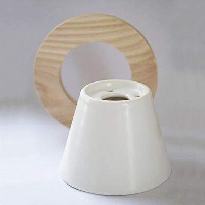逆楕円錐台形の磁器部をドーナツ型の受け部の内穴に通し、コーヒーサーバーやカップに直接のせ、使用するコーヒー抽出器具です。しっかり濃いのに、重くない、スッキリした飲み心地のコーヒーを目指し考案された、ドーナツドリッパーの1人〜2人用になります。釉薬はあたたかい印象の白マット。